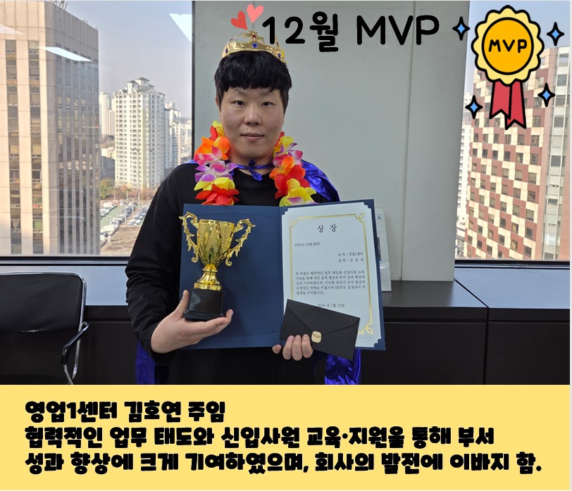 2025-12 동양 MVP 페이지 정보 작성자 관리자 댓글 0건 조회 91회 작성일 26-01-13 09:05 본문 . 목록 다음글[업무 혁신 아이디어 우수직원 시상] 26.01.12